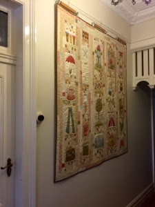 Definitely the right spot for your beautiful quilt. I have heard the Hang it Dang it from Punch With Judy is good.....only one hole in the wall. I've been going to try it myself for ages, as I don't have any quilts hanging either.